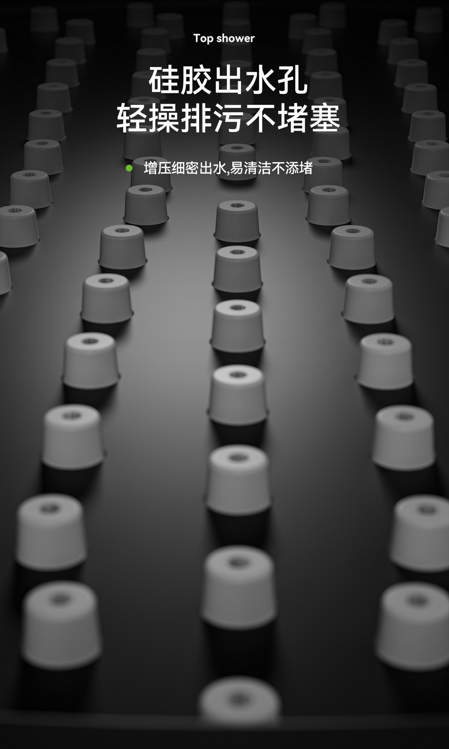 多功能手持花洒,充分融合中医经络理论,恰到好处的水流力度与角度,享受健康舒心的淋浴体验,全新液态高弹性硅胶材质,只需轻轻用手摩擦硅胶,出水孔即可去除水垢,干净卫生。水路芯采用59A全铜打造,一体精铸成型,壁厚均匀,强大的抗压性能,使用更持久,更放心。